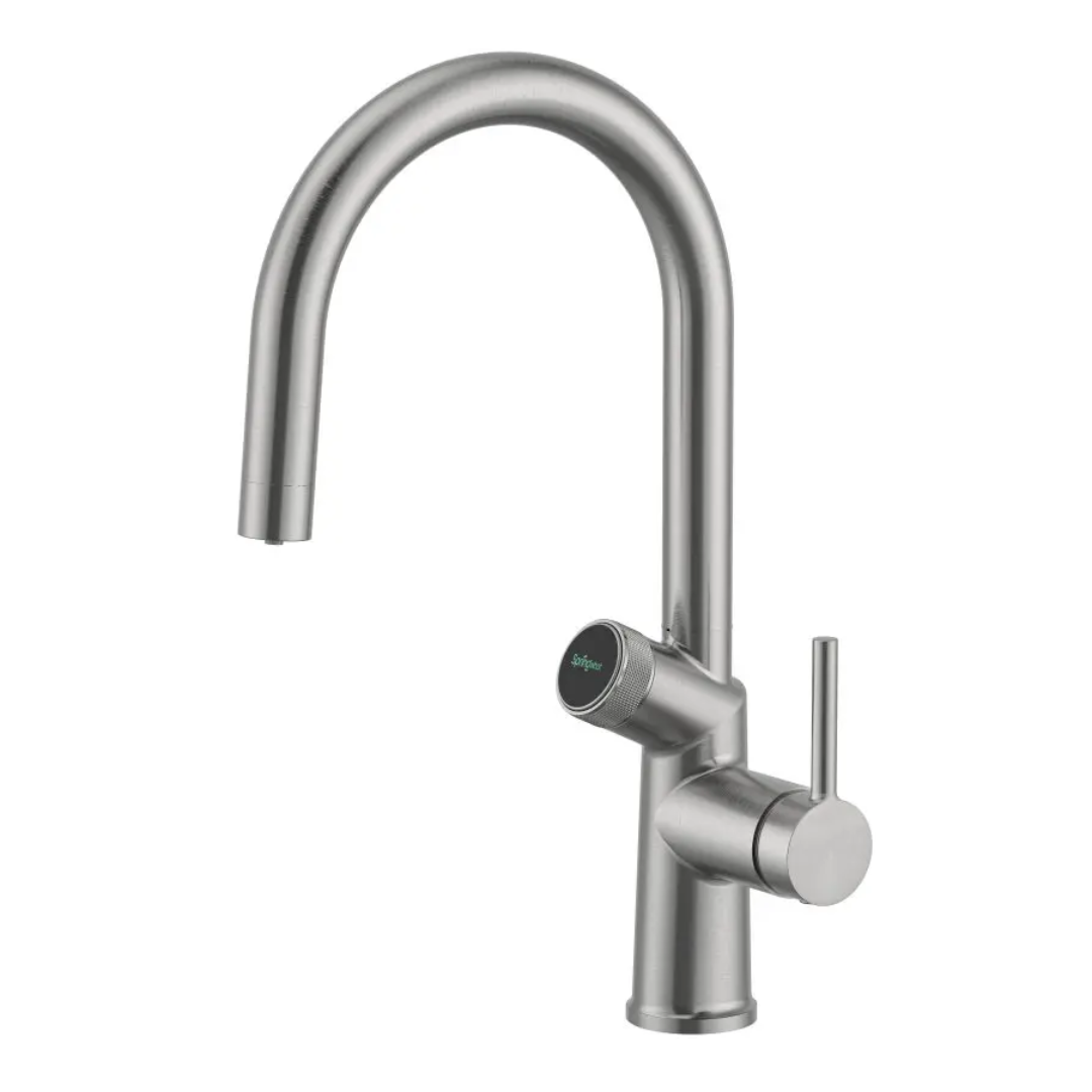 The Zumi Springwhat™ 6-in-1  Tap is a revolutionary all-in-one kitchen solution that delivers sparkling water, chilled filtered water, boiling water, filtered water, standard hot, and cold water straight from one sleek, space-saving tap. Built with premium engineering, it features a uni-fit CO₂ system compatible with SodaStream-style bottles, quick-change filter technology, and advanced self-protection sensors to prevent overheating and misuse. Designed for modern living, it eliminates the need for multiple appliances, reduces clutter, and saves energy while offering endless convenience. Its elegant minimalist design is available in a range of popular finishes—including Brushed Nickel, Matte Black, Chrome, Brushed Gold, Brushed Bronze and Gunmetal—to perfectly complement any kitchen style. With durability, safety, and effortless maintenance at its core, the Springwhat™ redefines hydration and smart living in your home, making it the ultimate tap for both residential and commercial kitchens.
